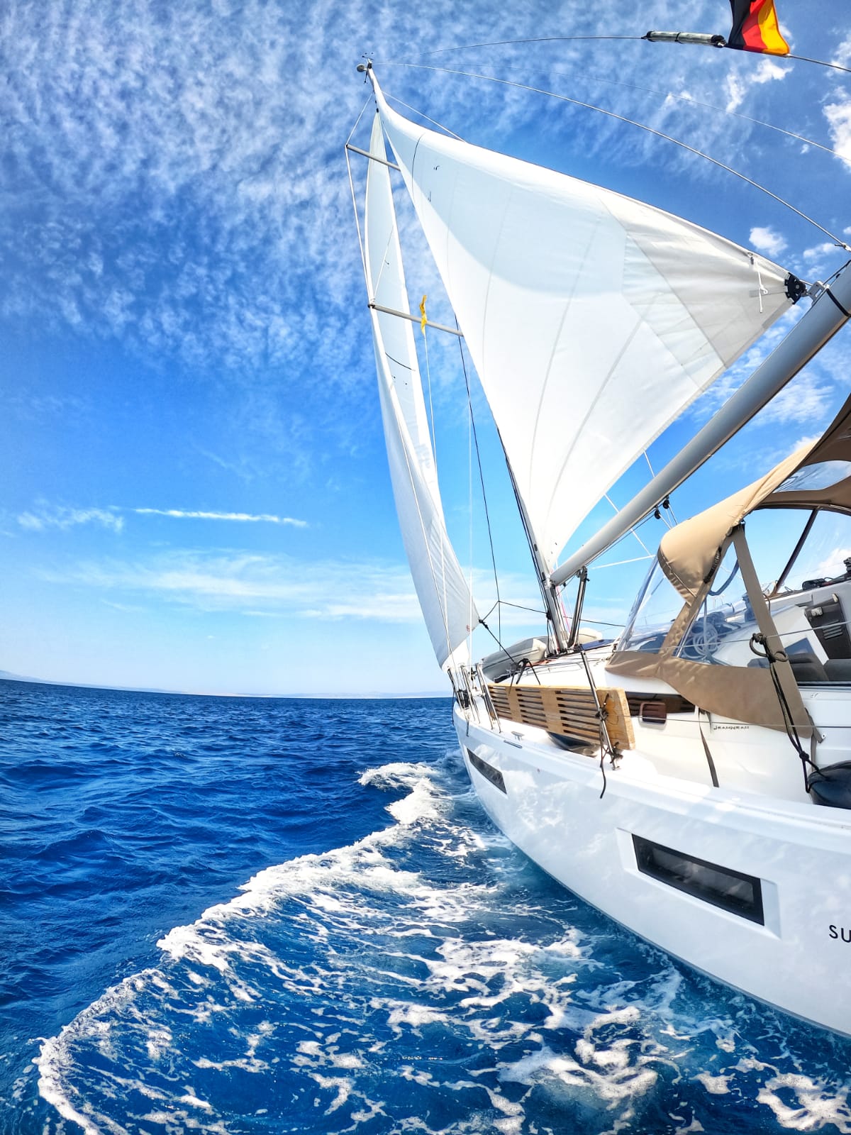 Der Nervenkitzel der Wellen, die Schönheit der Gewässer und angrenzenden Natur, die Ruhe der Abgeschiedenheit: All das Genießen wir beim Segeln.